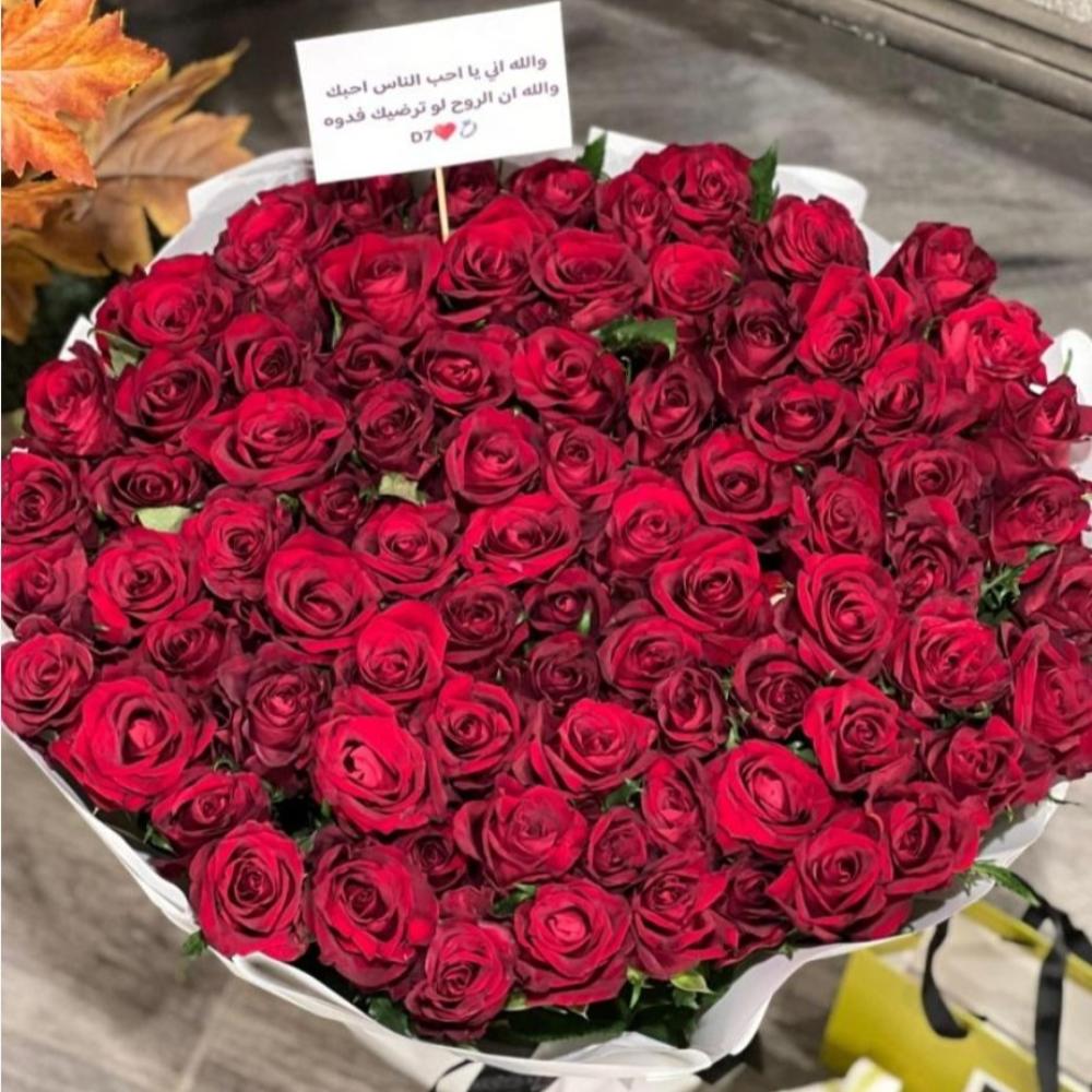 شوكولاتة باتشي مع بوكيه ورد 100 جوري أحمر من أجود الأنواع