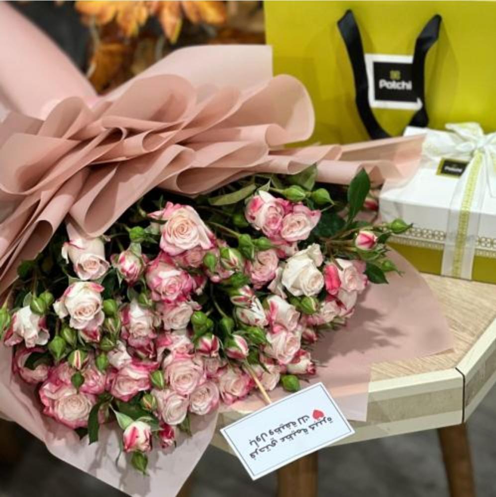 شوكولاتة باتشي مع بوكيه ورد بيبي روز pink mix